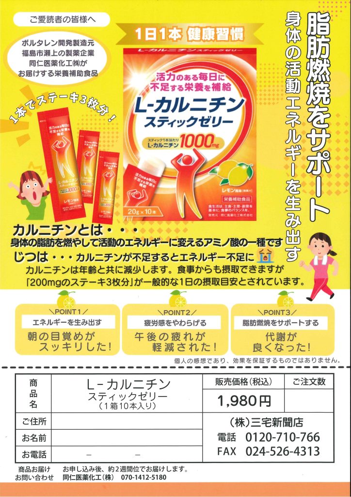 同仁医薬化工(株)提携商品 「L-カルニチン スティックゼリー」販売中!